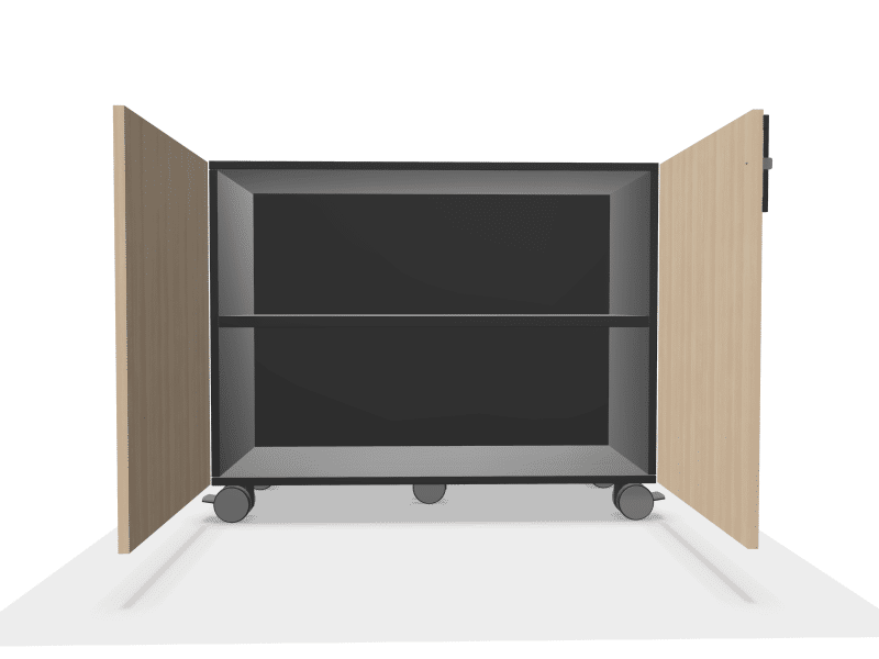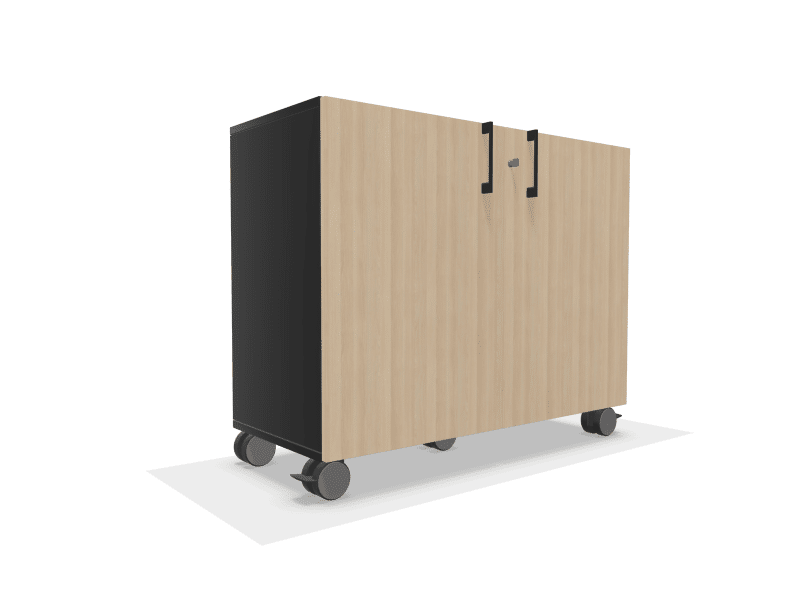 In ruimtes waar de indeling vaak wisselt — zoals vergaderzalen of flexplekken — is deze kast een uitkomst. Je rolt ’m makkelijk mee met de opstelling van de dag.